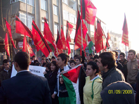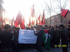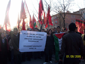 yazan Devrimci Sosyalist Gençlik pankartını taşıdı.