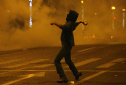 bir araya geldi. Çatışmaların yaşandığı gösteride,