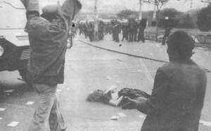 Son derece açık olan şey, ateşin kalabalığı kürsüye doğru sıkıştırarak panik yaratma amacıydı. Panzerler kitleyi sıkıştırıyor ve insanları en dar yokuşa, Inter Continental Oteli ile Pamuk Eczanesi arasında kalan Kazancı Yokuşu’na doğru yöneltiyordu. Olaylar başlamadan az önce Kazancı yokuşu başına park edilen mavi renkli bir Fiat kamyonet ve yerlerde rastgele duran tekerlekli el arabaları